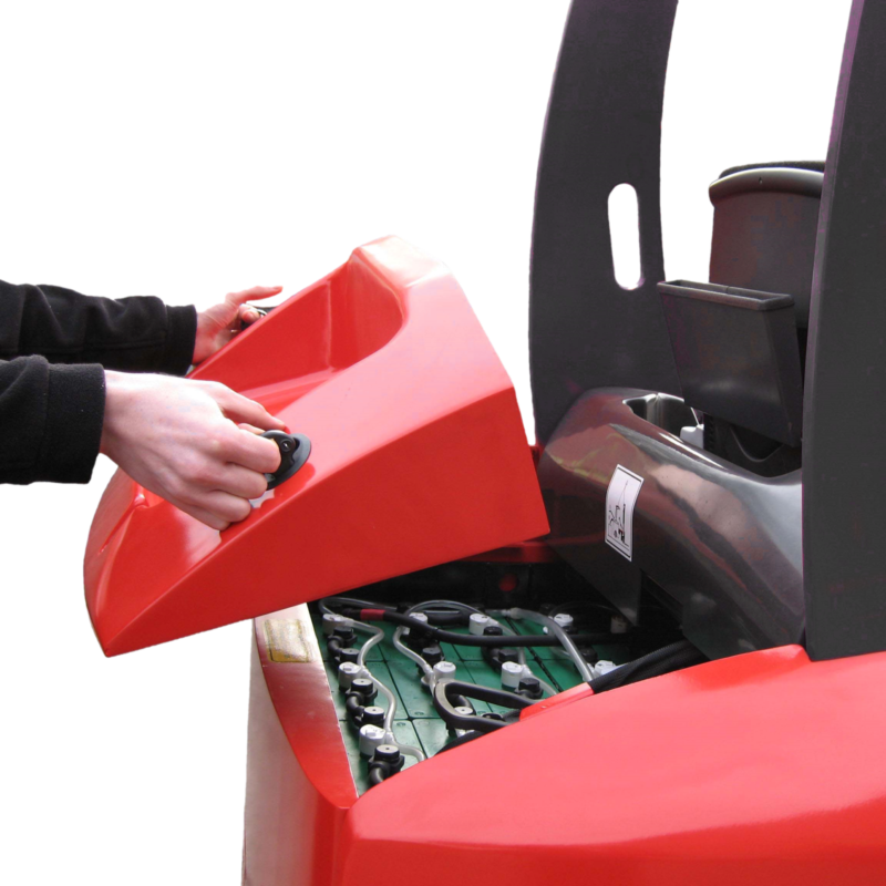 Hiter in varen dostop do baterije ter njeno menjavanje. Enostaven pregled in polnjenje baterije. Pod njim ni skritih motorjev, zavor ali črpalk.