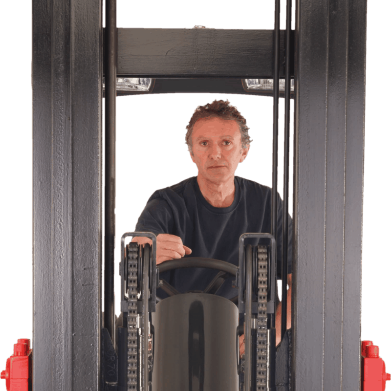 Upravljavci imajo odlično vidljivost naprej zaradi našega trikratnega prostega dvižnega teleskopa s stransko nameščenimi dvižnimi cilindri. Varno in produktivno pobiranje in odlaganje palet naprej.